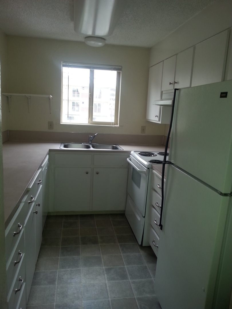 Quad apartments have a shared kitchen equipped with 2 refrigerators, and some of the rooms come with their own vanity sink. There is a shared bathroom. All bedrooms have separate keyed entrances and parking is first come first serve with no guest parking allowed. Flat rate Utilities- $85/month. Monthly Common area cleaning is provided