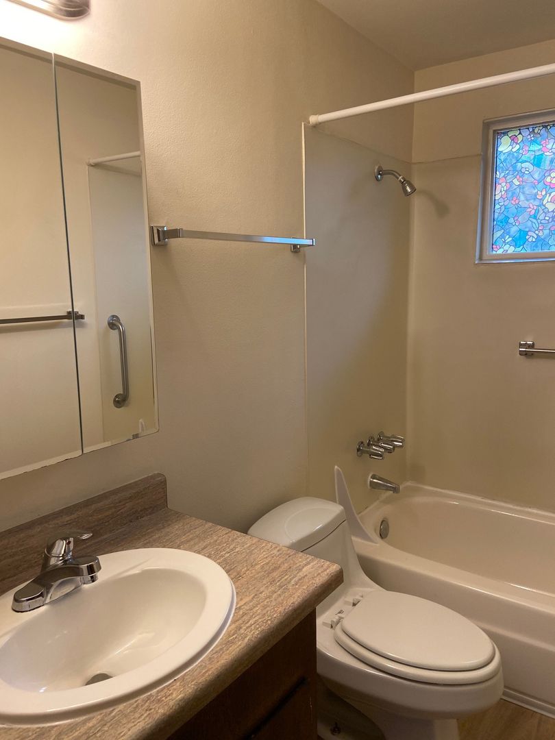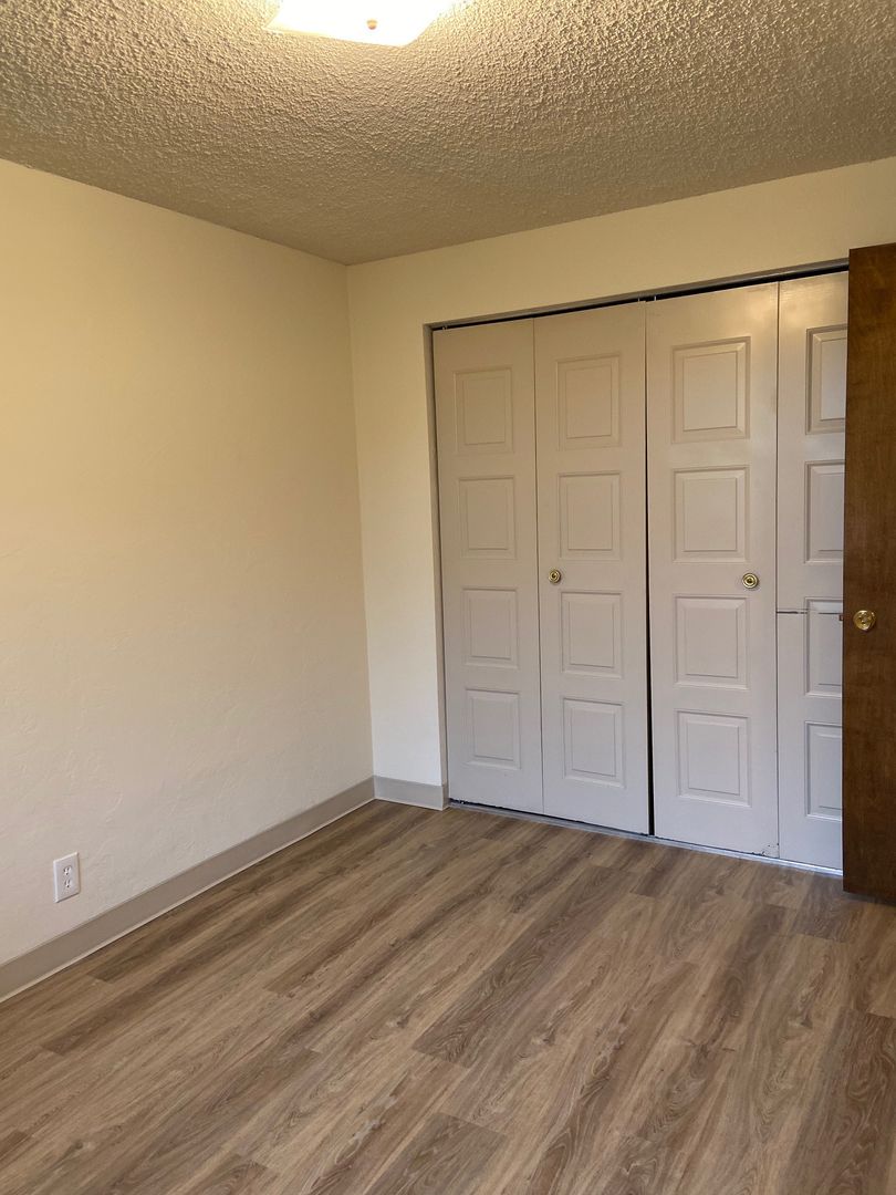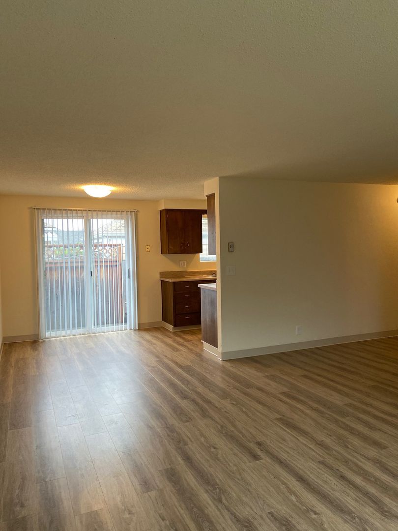 This spacious apartment features a large front window in the living room with a dining area off the kitchen with a sliding glass door leading to a private deck. Bedrooms have ample closet space. There is off-street parking in the back of the property with personal storage units and a flourishing secluded gated courtyard. This is a no smoking property. Resident is responsible for back yard care. Property provides front yard landscaping, water, sewer and garbage.