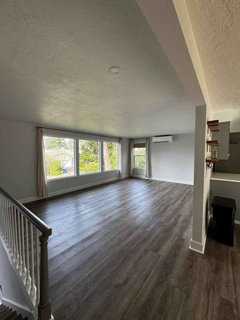 This beautiful and spacious 3-bedroom, 3-bathroom home (1,830 sq ft) in the desirable South Eugene / Churchill area offers the perfect mix of character, charm, and modern updates. With generous living spaces and thoughtful upgrades throughout, this home is truly special and ideal for anyone who loves to entertain or simply enjoy a stunning place to live. Inside you’ll find luxury laminate flooring, large windows with natural light, and multiple heating/cooling systems for year-round comfort, including two ductless heat pumps and cadet heaters. The home also features a decorative fireplace that adds character to the main living area. The kitchen comes fully equipped with range, refrigerator, dishwasher, and disposal. Washer/dryer is located downstairs. Step outside to enjoy a large, fenced backyard and back deck, perfect for hosting friends, relaxing outdoors, or enjoying the peaceful neighborhood setting. One bay of the garage will not be available for tenant use until July 1, 2026. The remaining garage space and parking areas are available for tenant use. Renters insurance is required. Located in the Churchill area of South Eugene, this home offers convenient access to parks, schools, shopping, and local amenities. Weekly front and back landscaping included. Renters Insurance is required. Tenants pay all utilities.