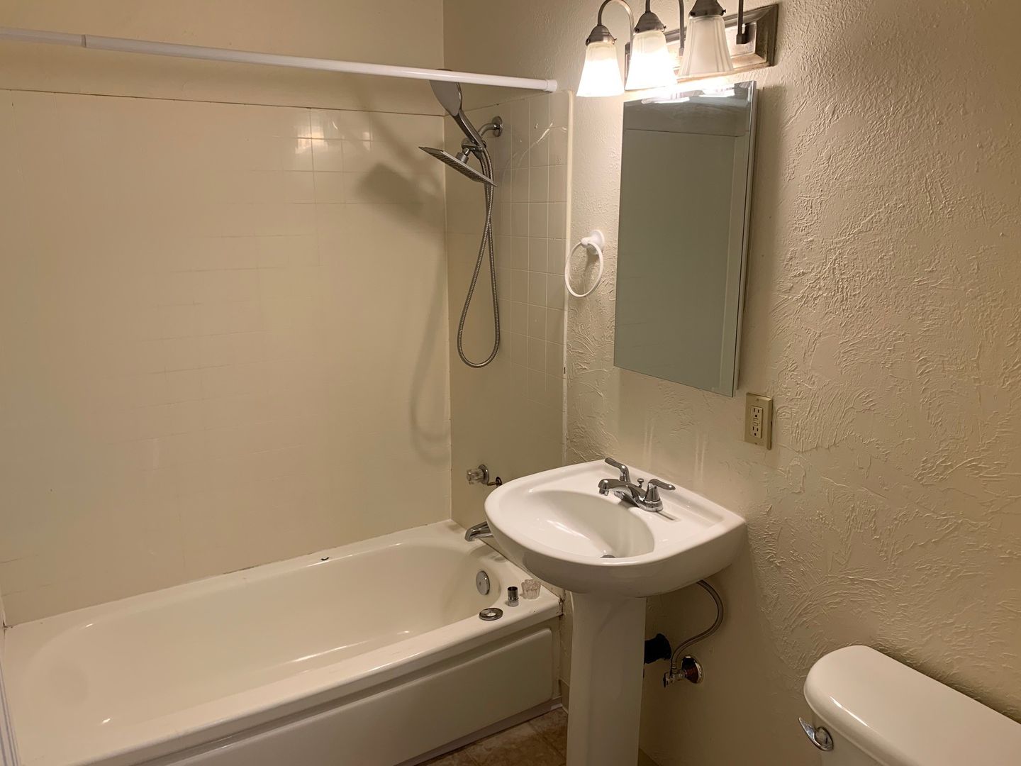 The kitchen is well-equipped with a gas range and dishwasher, ideal for home cooking and easy cleanup. The living area features a decorative-only fireplace, adding character and charm to the space. Tenants are responsible for all utilities and yard care.