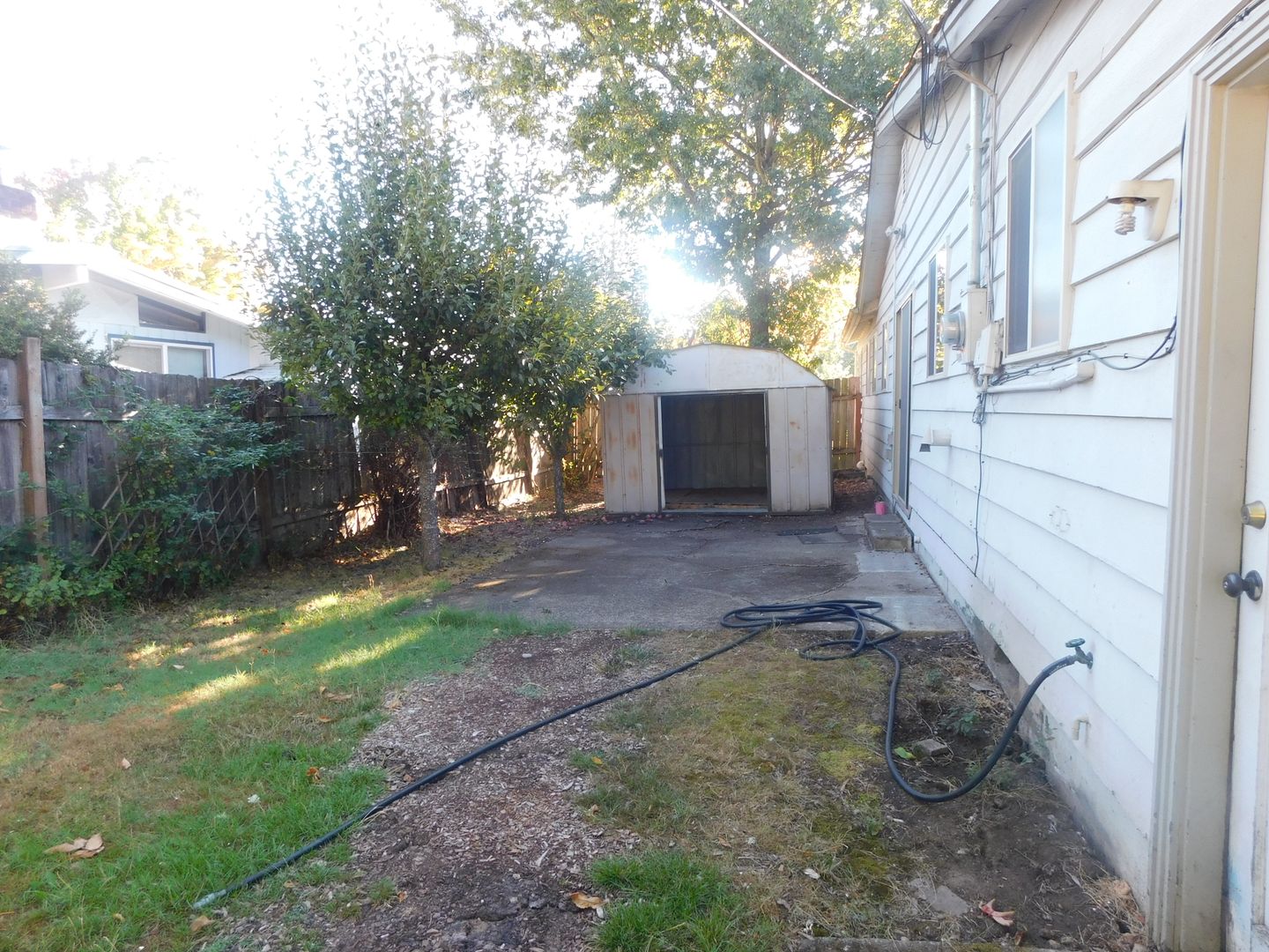This 3/BR-1.5 bath home features original hardwood floors, a decorative only fireplace and a large sunny bonus room with carpet and built-in shelves. The roomy kitchen has a fridge, glass top oven/stove, dishwasher and *Washer & dryer are provided (replaced/repaired at owner's discretion). This home is on a corner lot that has apple and pear trees along with two storage sheds and conveniently located near coffee shops, restaurants, grocery stores and many other spectacular businesses. This is a no smoking/vaping, pet friendly home. Enjoy the off-street parking and a fenced back yard, this pet-friendly property offers both comfort and convenience. Residents are responsible for all utilities and yard care. Renters insurance is required. This is a no smoking/vaping property.