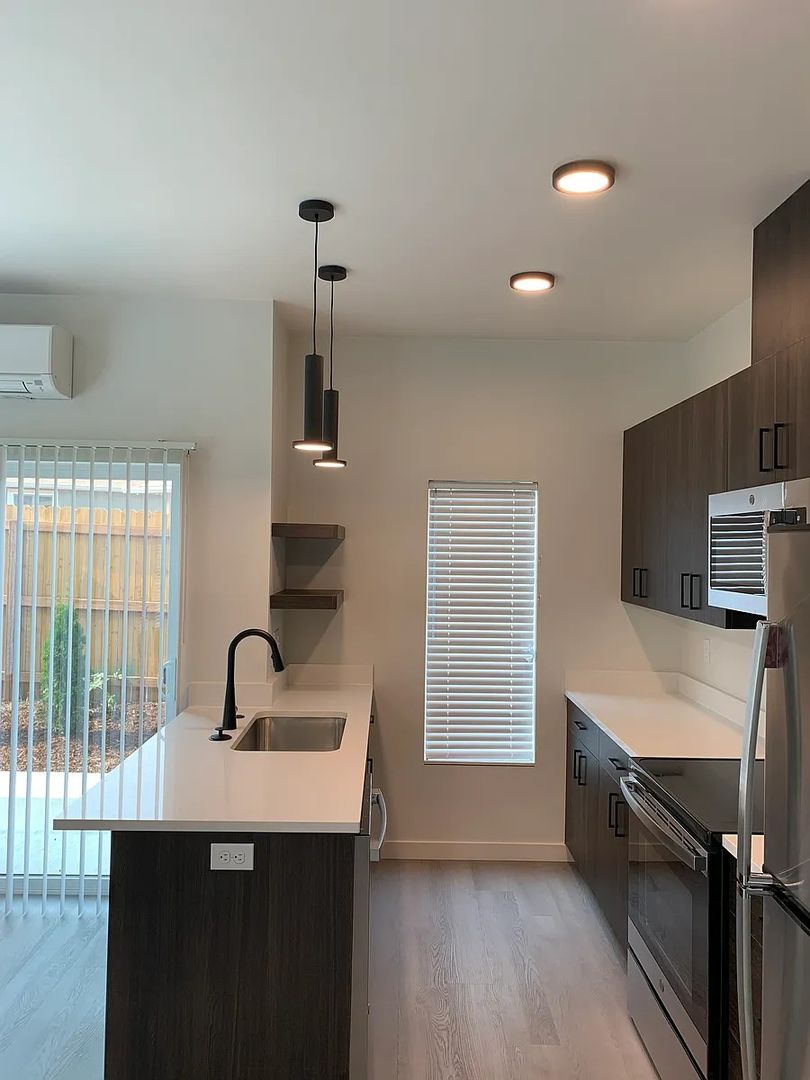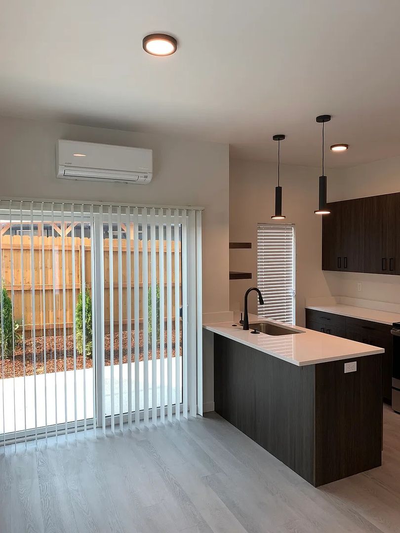 Introducing our brand new townhouse in Creswell, OR! This 2-bedroom, 1.5-bathroom end unit features high ceilings, stainless steel appliances, and luxury vinyl plank flooring. Enjoy the convenience of a dishwasher, built-in microwave, and stackable washer/dryer. The semi-private patio is perfect for relaxing outdoors. Stay comfortable year-round with ductless A/C and ceiling fans. This new construction also includes water, sewer, storm water, and garbage services. With a Jack and Jill bathroom, glass top range, and stone countertops, this unit has everything you need. No smoking or vaping allowed on the property. Don't miss out on this opportunity to call this beautiful townhouse your new home!