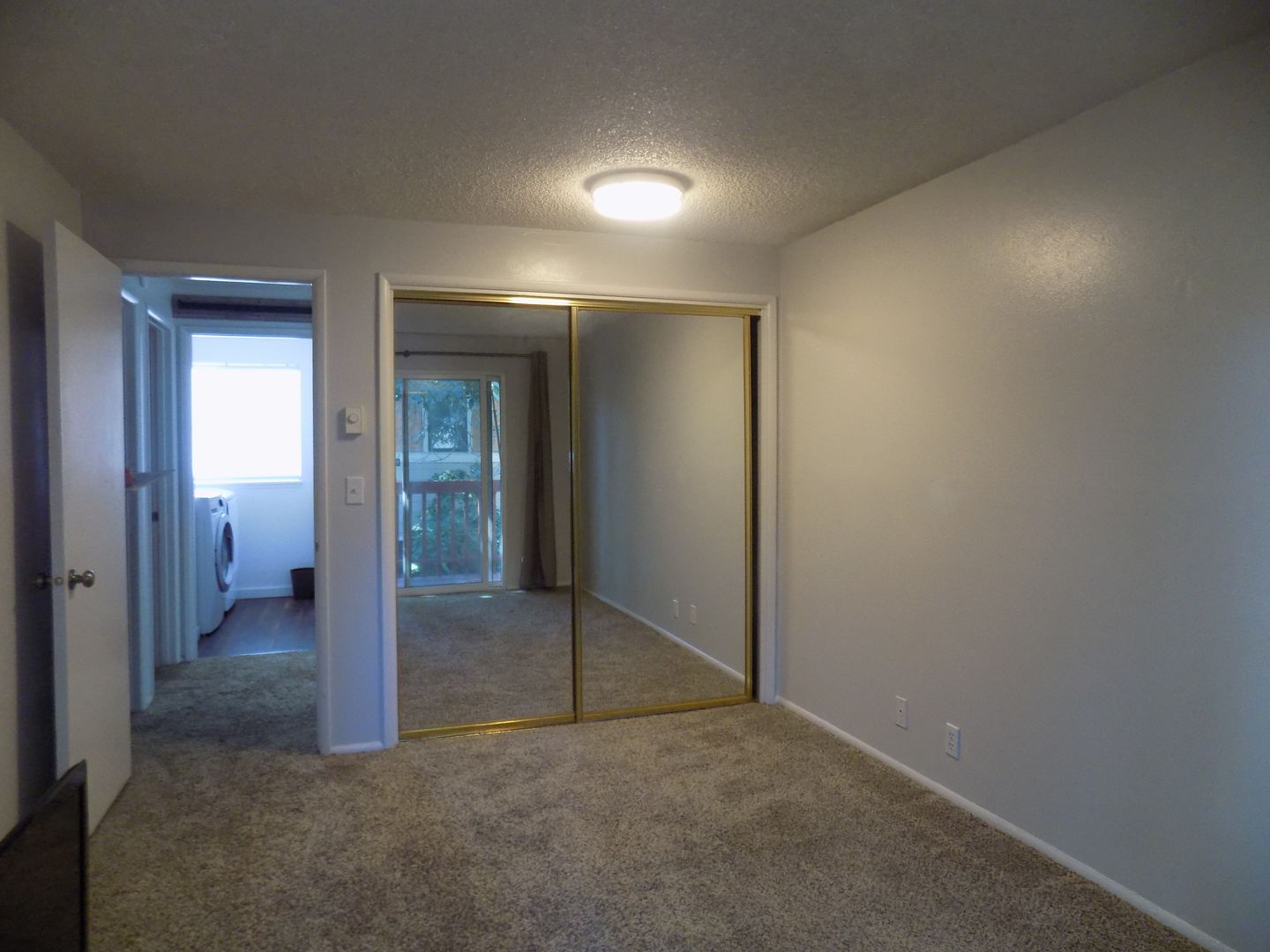 This beautiful two-story condo is very spacious in a highly desirable area. Just off Coburg Road and close to schools, coffee shops, restaurants, grocery stores and many other spectacular businesses, this home offers both comfort and convenience. The kitchen is equipped with lots of cabinet space, large pantry, stove, fridge and dishwasher making meals a breeze. Hardwood floors in the kitchen, dining room and living-room with built-in AC a sliding glass door that opens to a patio with a shared backyard. Bedrooms have carpet and one upper bedroom has an AC wall unit and both have sliders that opens to a large balcony! The upstairs bathroom has a shower, tile flooring and a storage cabinet. The laundry room has a rustic sliding barn-door, front load washer/dryer (repaired/replaced at owner's discretion) ensures that laundry is a hassle-free task. Two car garage with two parking spaces in front of the garage doors. This community has a pool, sauna and club house. HOA provides water/sewer/storm-water, garbage service and yard-care. HOA Rules and Regulations apply to residents. This is a pet friendly and no smoking/vaping property.