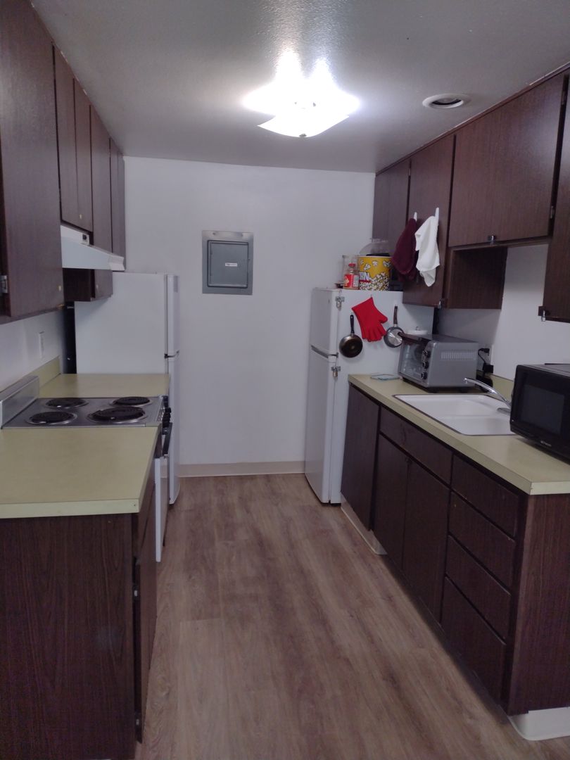 Welcome to the Springtree Apartments in Eugene, OR. This charming community offers residents a serene environment surrounded by lush greenery. Each single-occupancy (1 person only) unit features a spacious walk-in closet, electric heat, and fixed utilities for added convenience. Residents can take advantage of the on-site coin-operated laundry facilities and off-street parking. The shared kitchen is perfect for preparing meals and socializing with neighbors. Additionally, the community room with WiFi access provides a great space for remote work or relaxation. Don't miss out on the opportunity to call this peaceful oasis home.